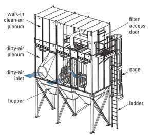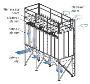MB除塵器有兩種型號:MBT型允許人在頂部行走,并從干凈氣室側對布袋進行操作。這種結構適合安裝于室內或預算緊張的應用。而MBW型則提供了一個步入式的干凈氣室,可以全天候地進行布袋的更換。