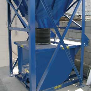 針對高塵量的應用,MB可選配專為叉車傾倒而設計的1500 L 2300 LDumpster集塵箱。Dumpster集塵箱已配有密封蓋,不需加裝卸灰閥 。